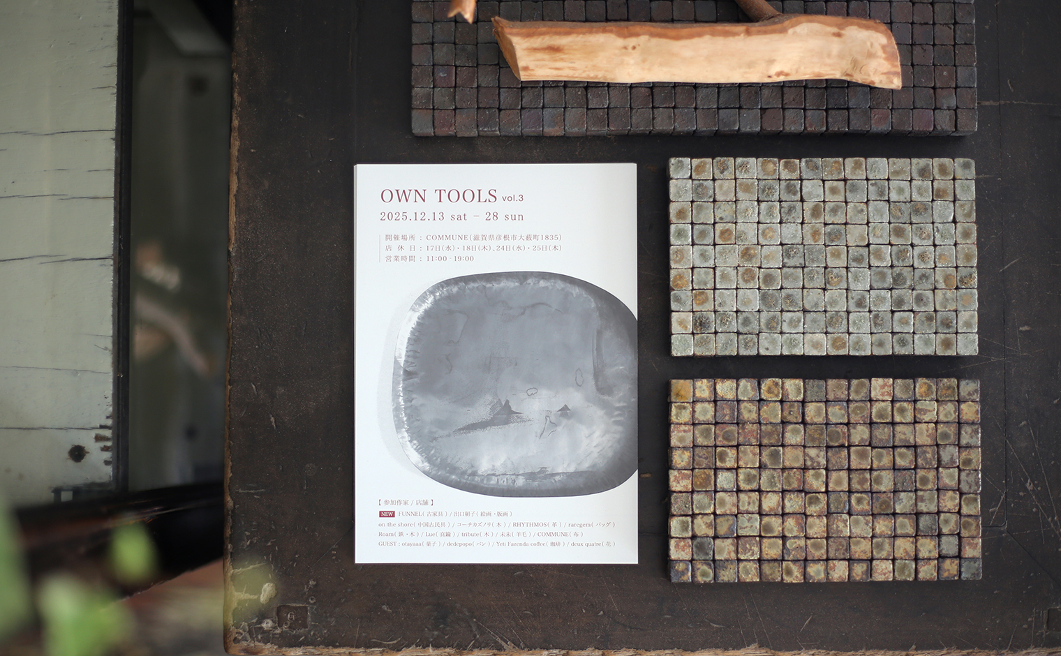 三度目となる本展では、茨城県で古家具を扱われているFUNNELさんと、滋賀県で現代抽象画を制作されている出口朝子さんに参加していただきます。