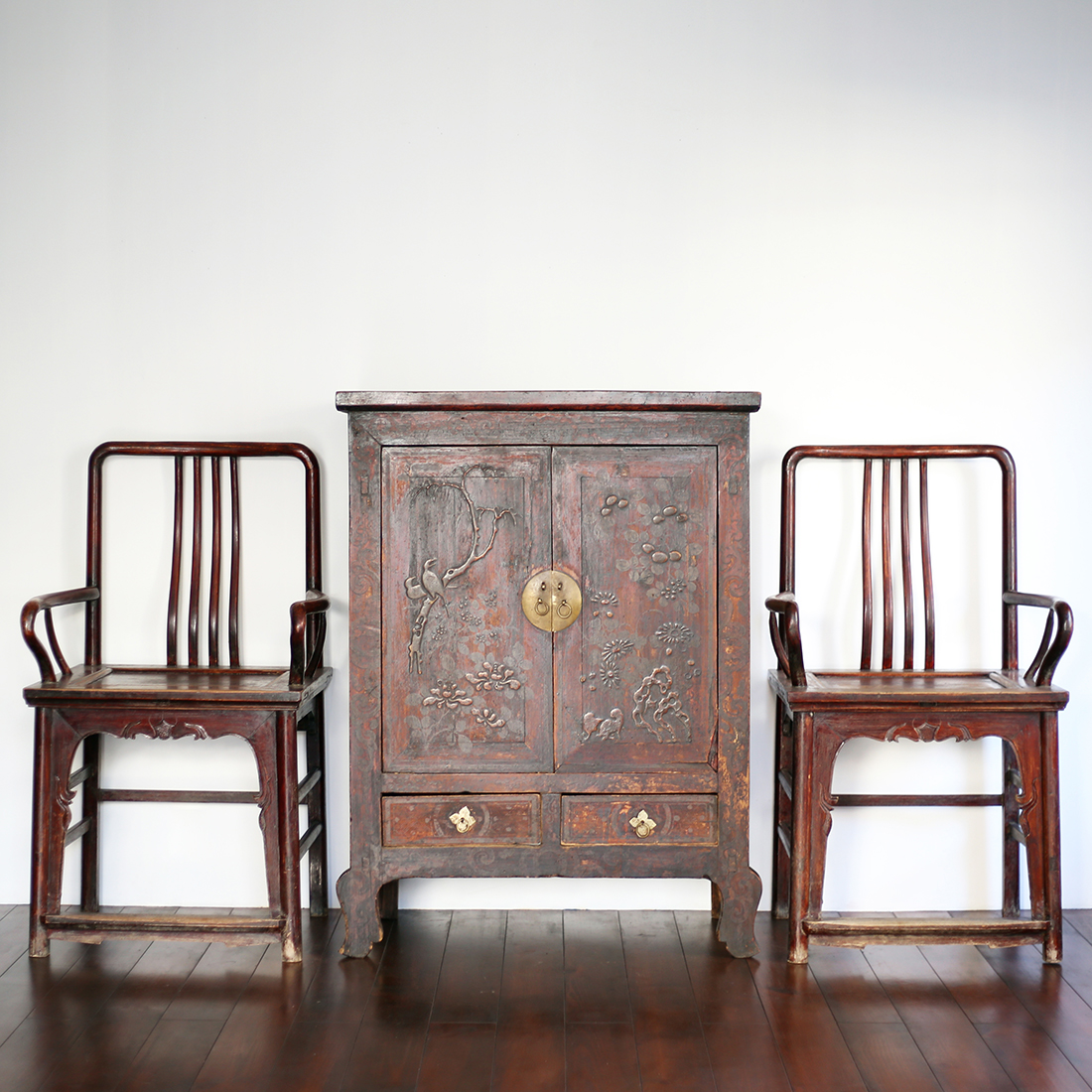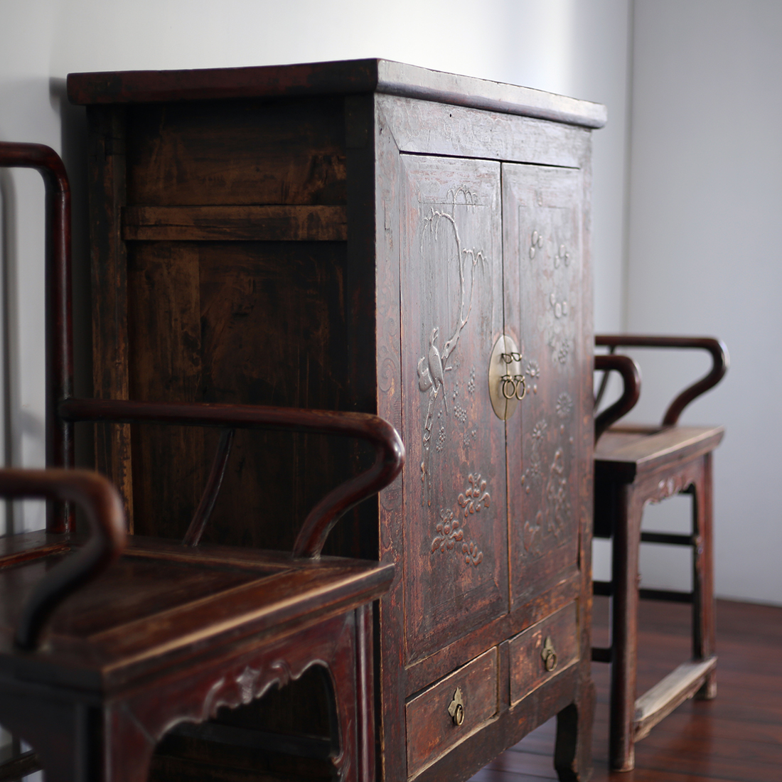 清代・山西省の小さいサイズのキャビネット。かなり古い。装飾が美しい。