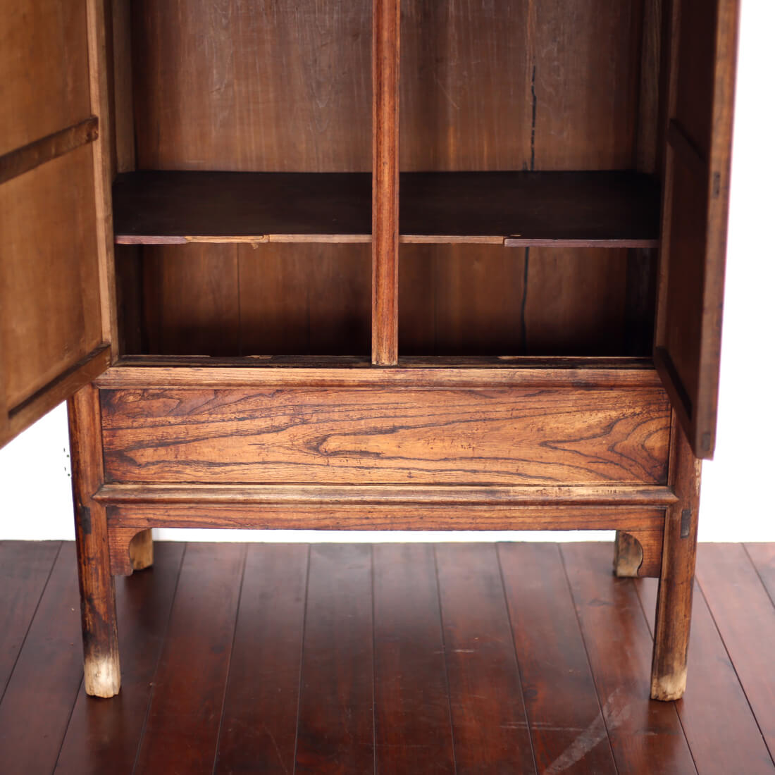 観音開きの大きい山東省の収納。扉は取り外し可能。