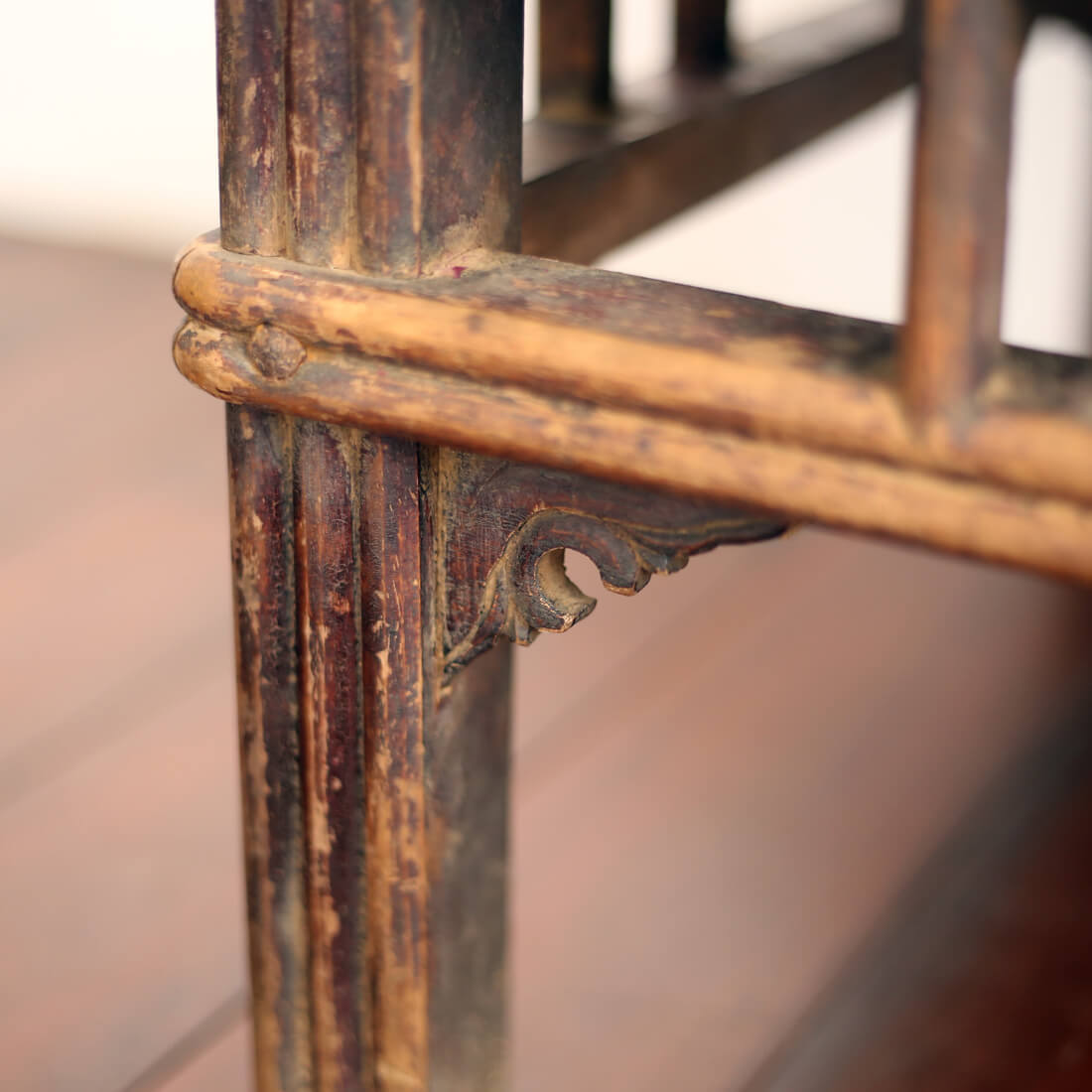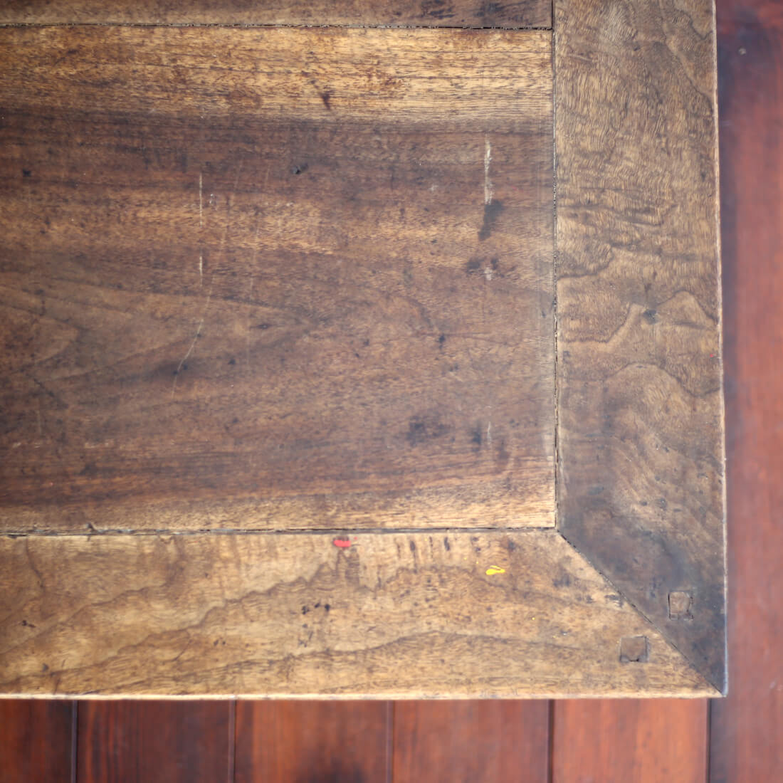 硬くて重い高級材である胡桃で作られている。装飾と脚の意匠もいい。