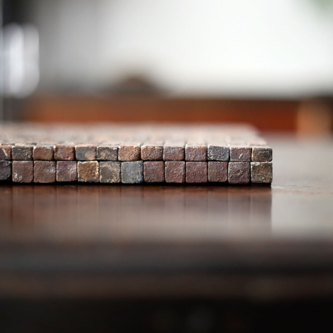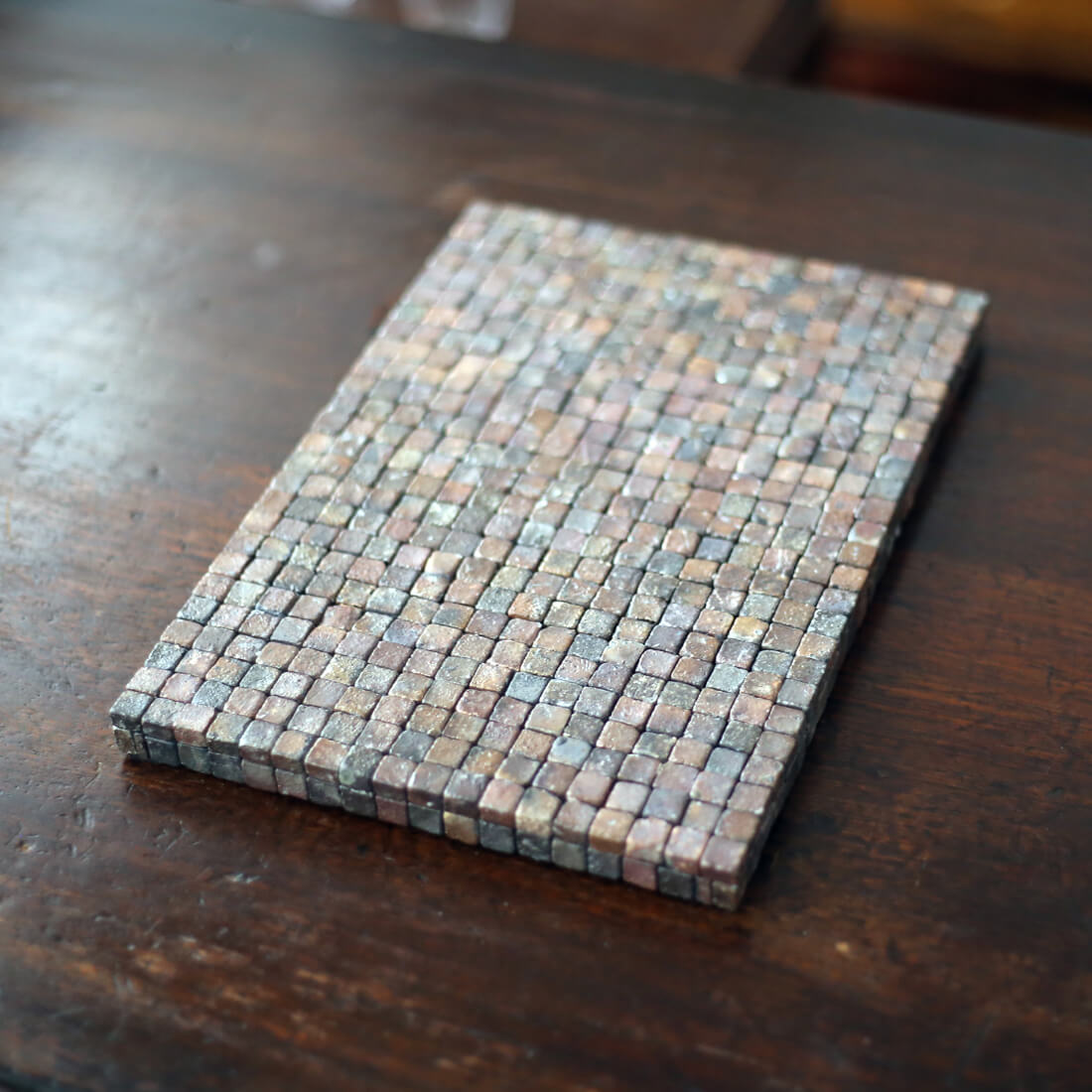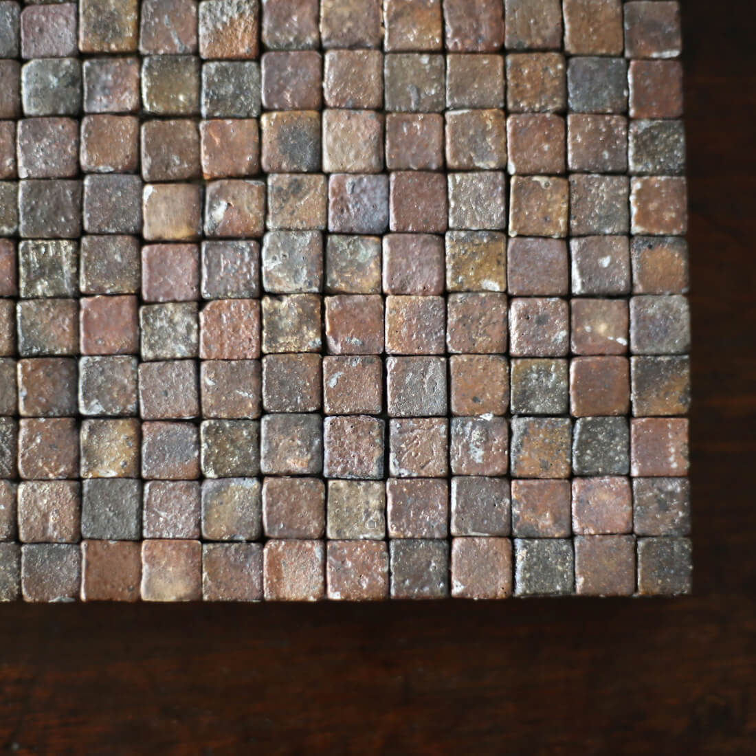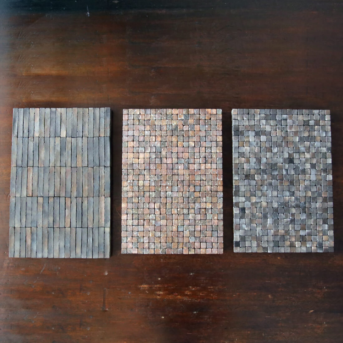 当初は再生粘土の焼き色テストが目的だったが、手に入る屑土を受け入れ自らの素材選択を放棄したことで無数に採れる「ゆらぎ・ブレ」の