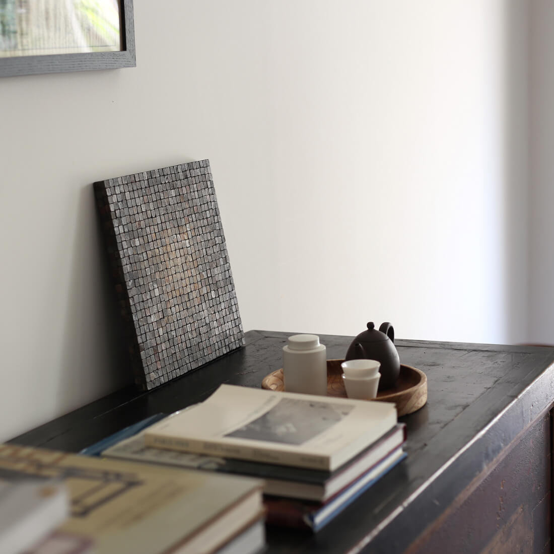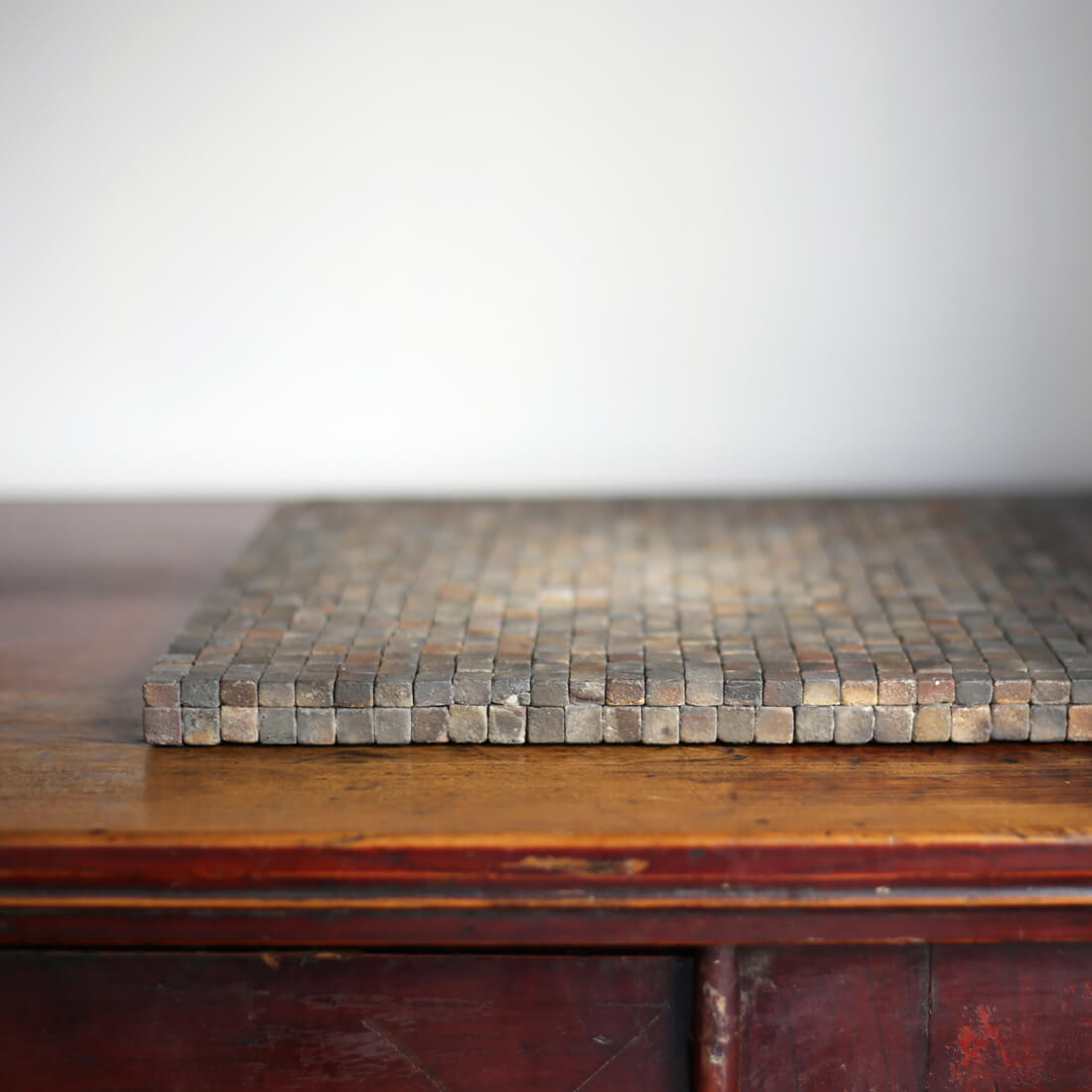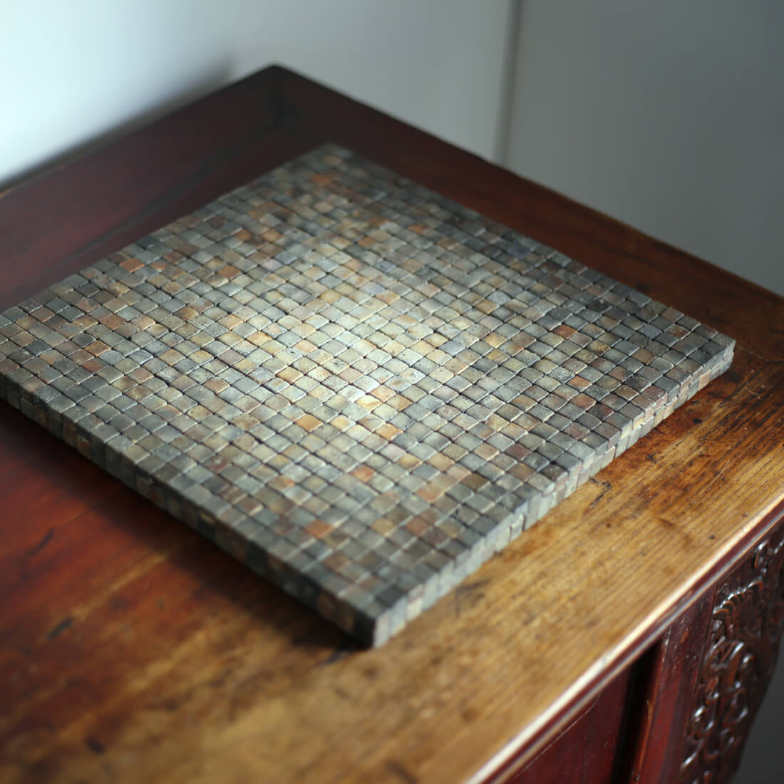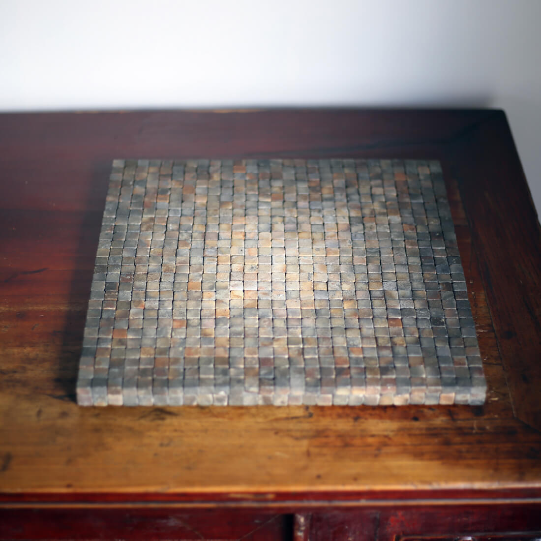 当初は再生粘土の焼き色テストが目的だったが、手に入る屑土を受け入れ自らの素材選択を放棄したことで無数に採れる「ゆらぎ・ブレ」の