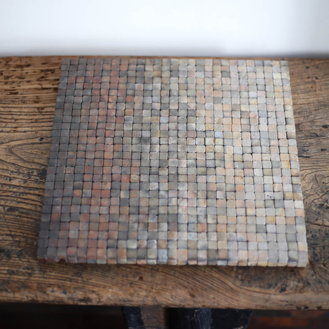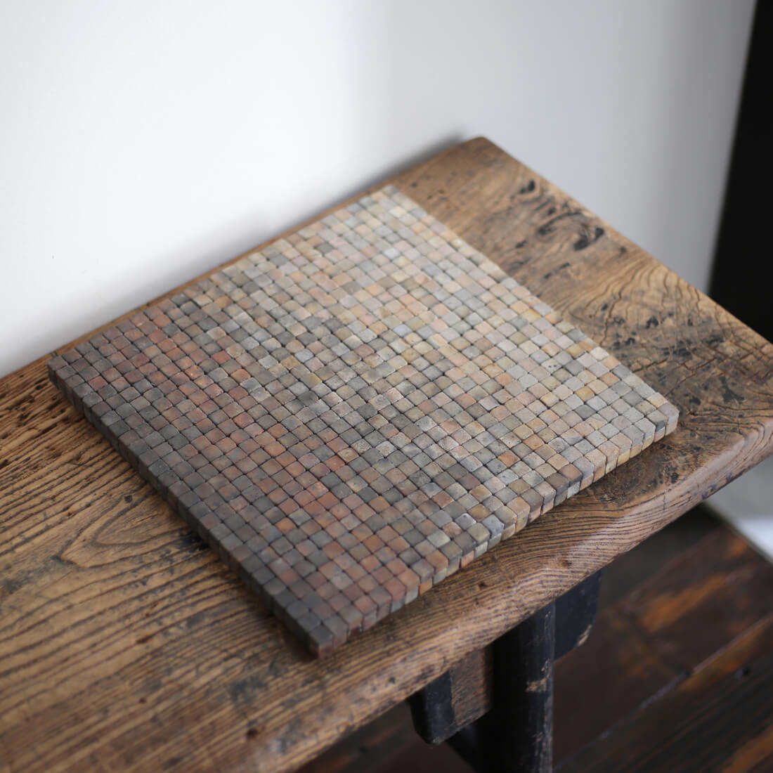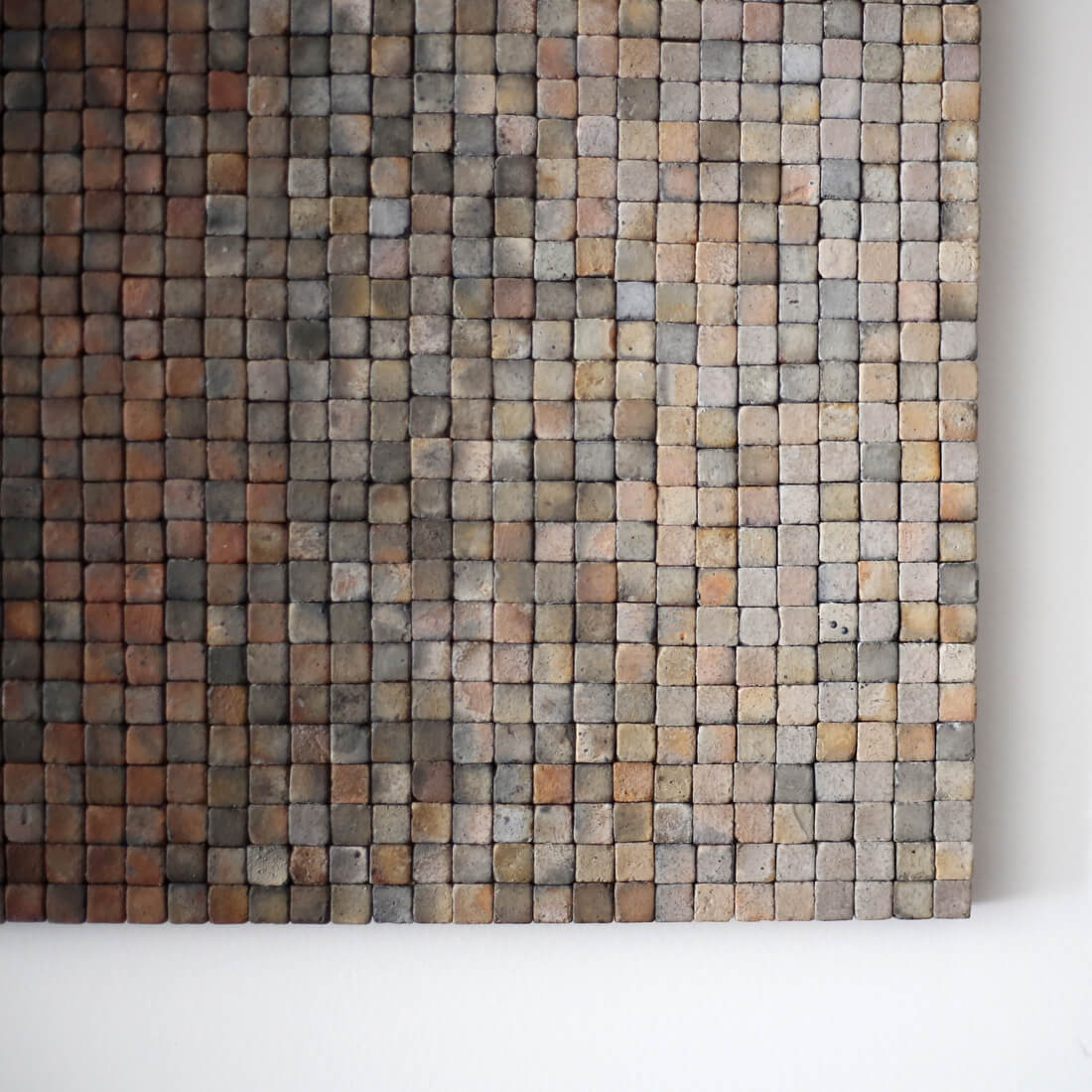 当初は再生粘土の焼き色テストが目的だったが、手に入る屑土を受け入れ自らの素材選択を放棄したことで無数に採れる「ゆらぎ・ブレ」の