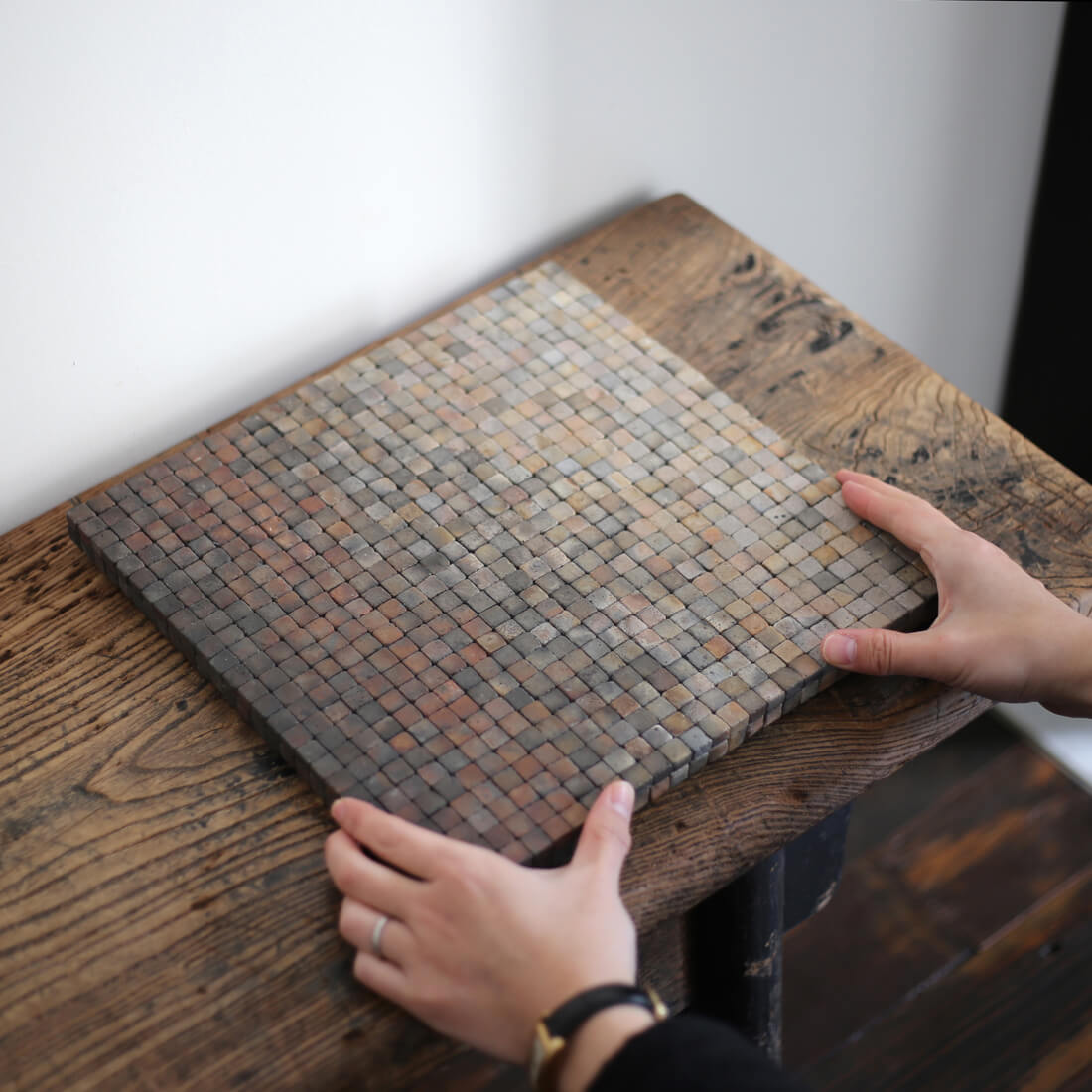 一つ一つ板張りし作品となる。