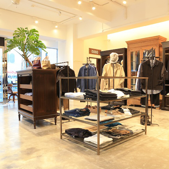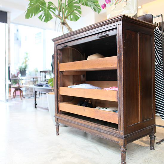 広島市中区にあるアパレルショップ vincent & mia 様のリニューアルオープンに合わせて、店舗用什器として上海の家具とヴィンテージランプをセレクトして頂きました。