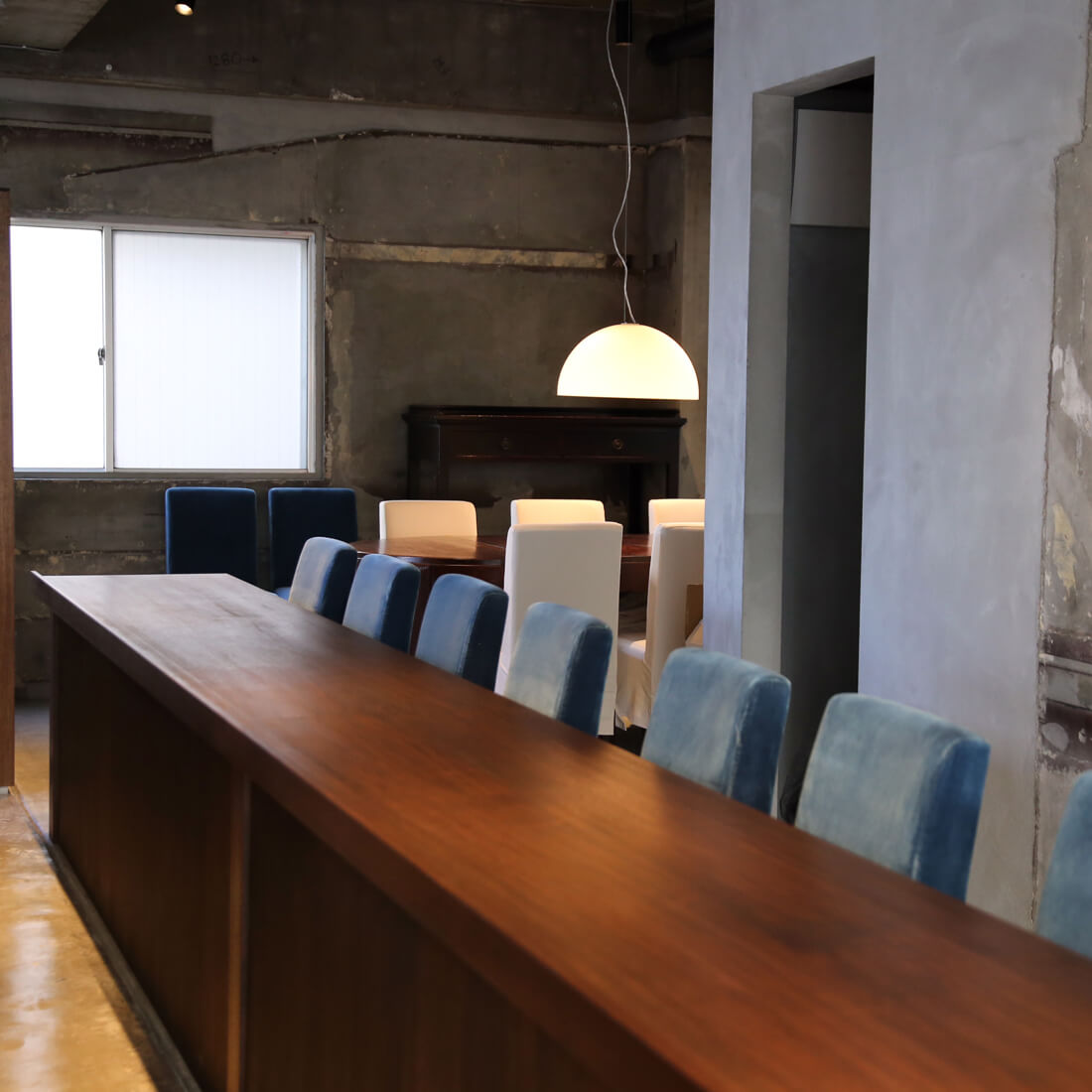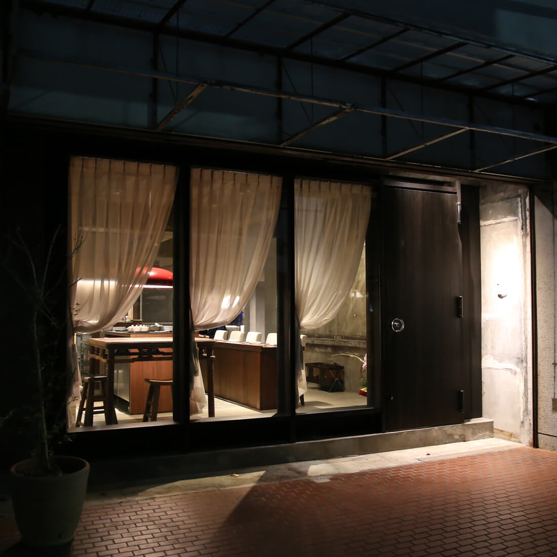 中国薬膳料理店の内装。「既存の建物のもつポテンシャルを引き出し、料理や中国アンティーク家具と共鳴するような空間のデザインをした」Buttondesign 菊田康平。