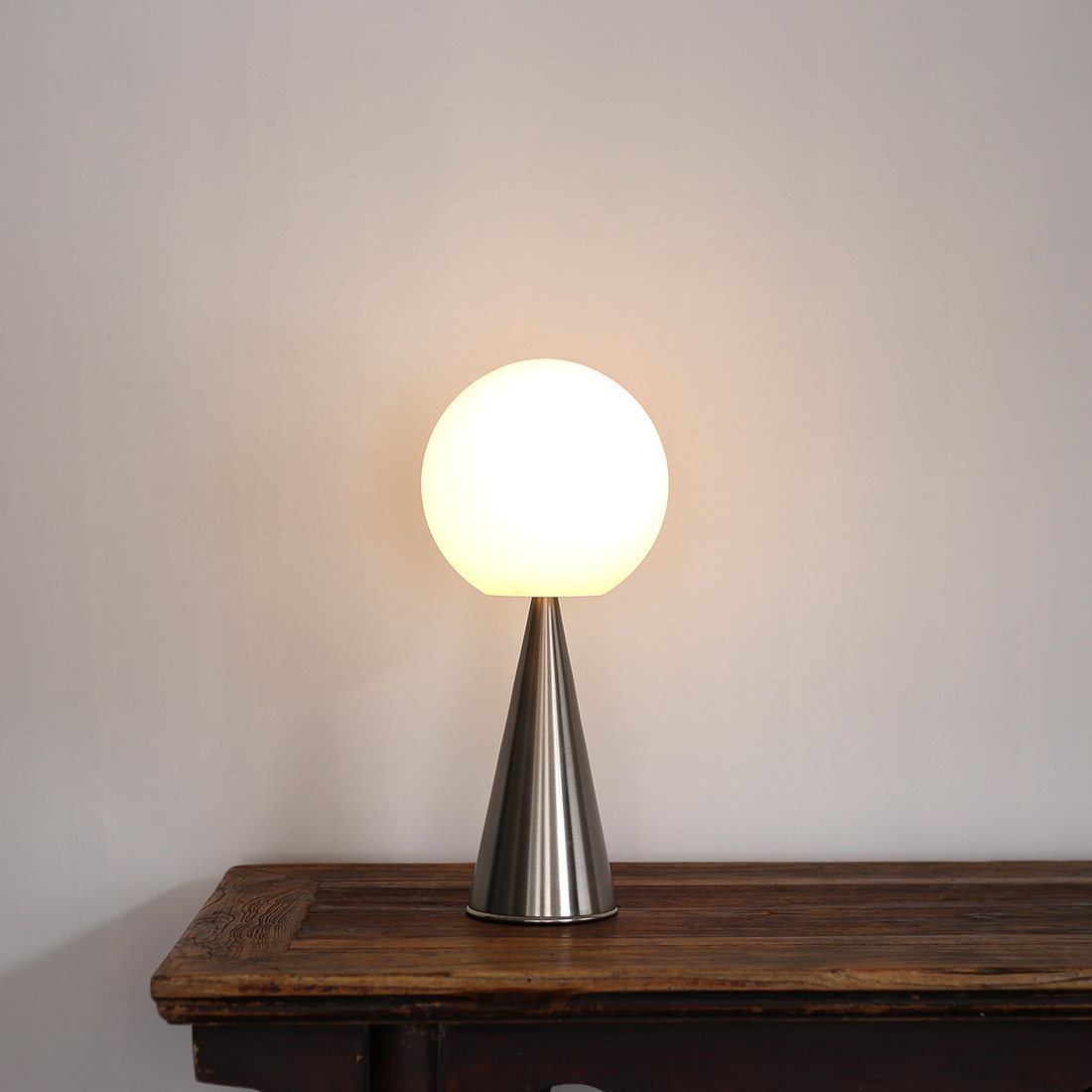 円錐と球:2つの本質的で認識可能な幾何学的形状。その比類のないバランスと非反射材のスタイリッシュな裁量により豊かな控えめな構成。gio ponti 1932年デザイン。