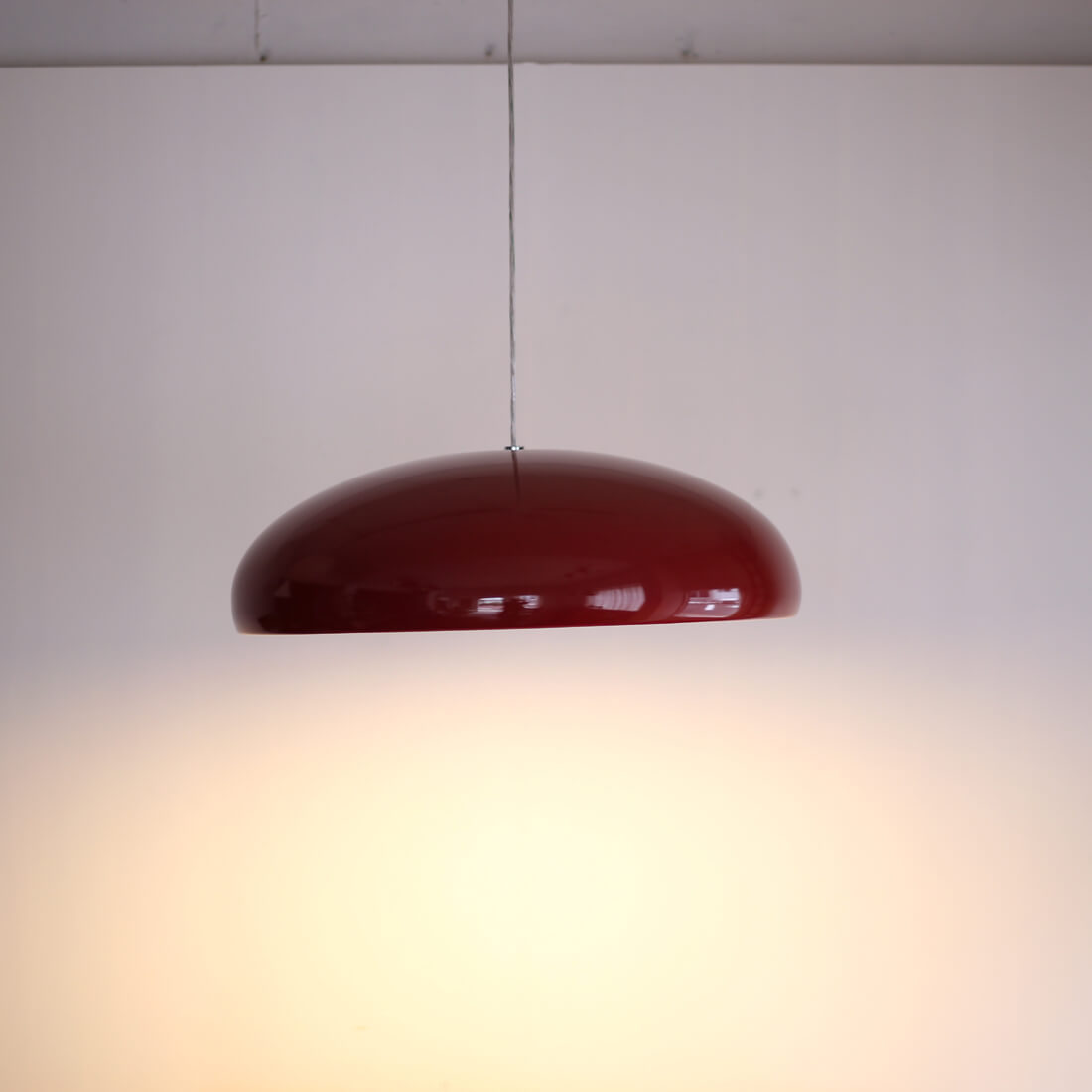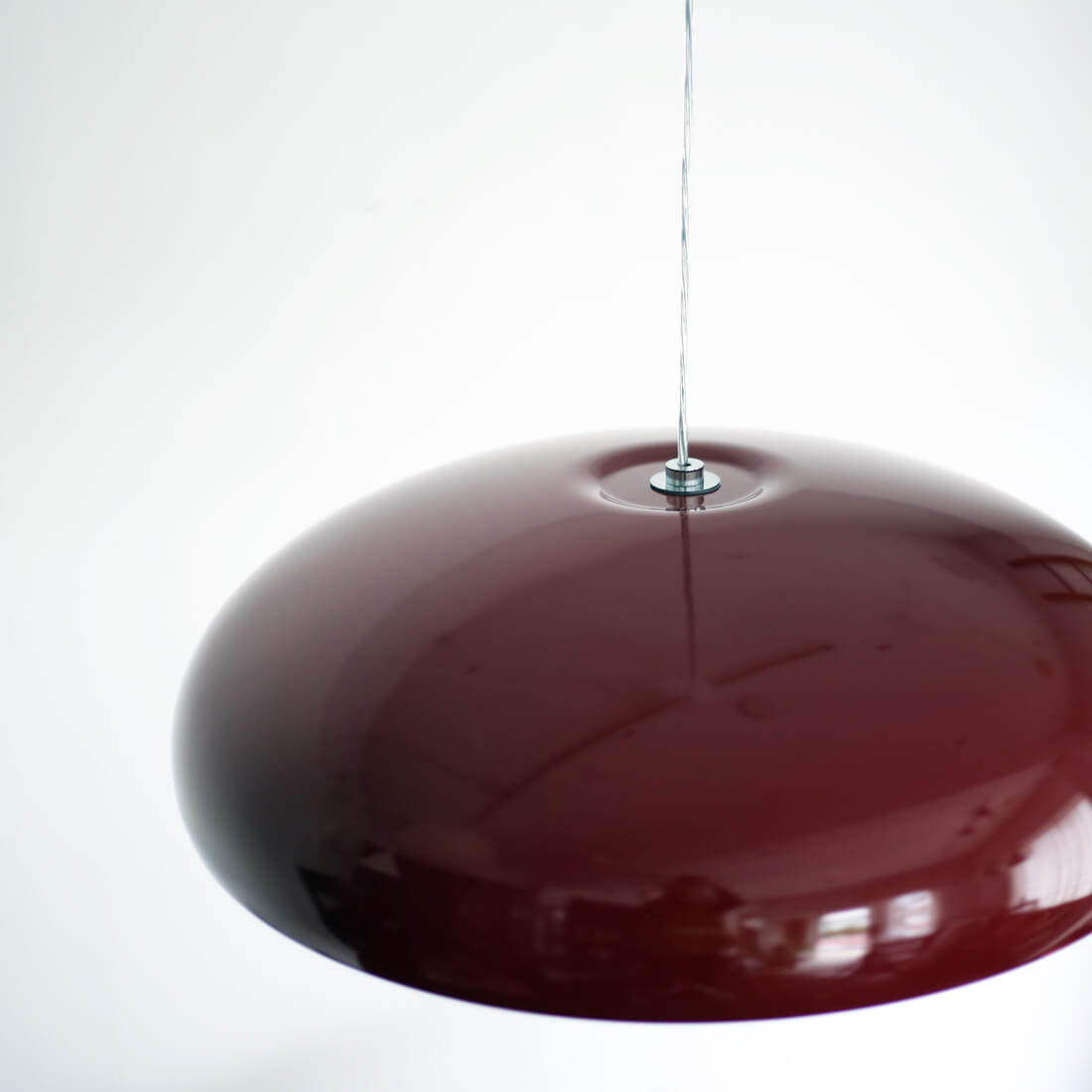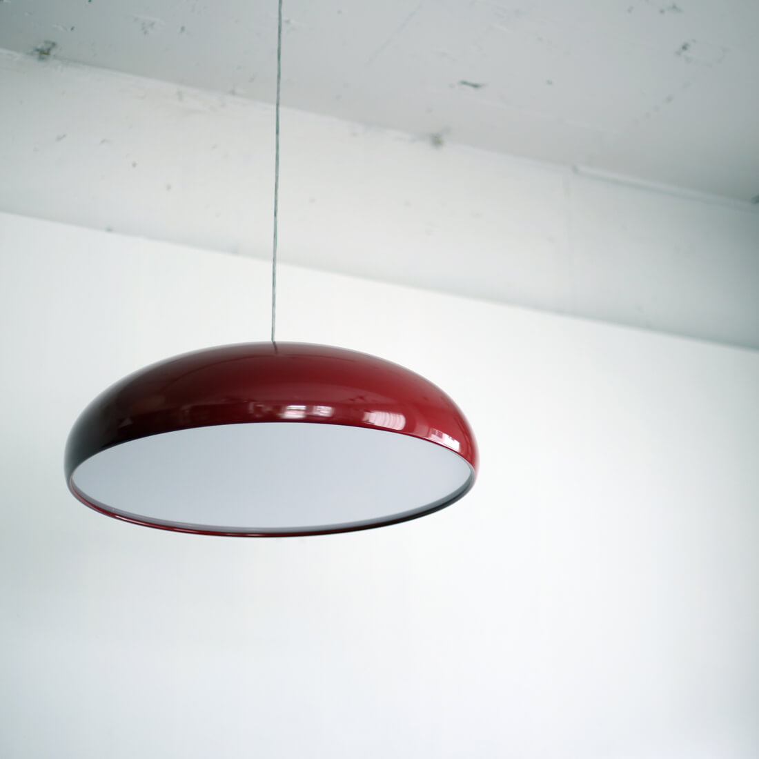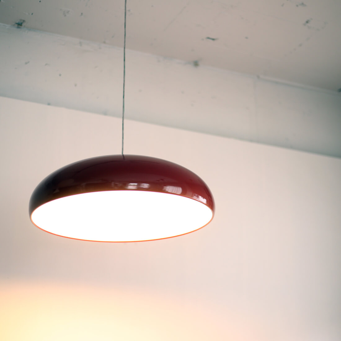 fontana arte のデザインアーカイブから生まれた、空中に浮かぶオブジェのような照明。カラーリングも冴えている。同デザインのシーリングランプもあり。