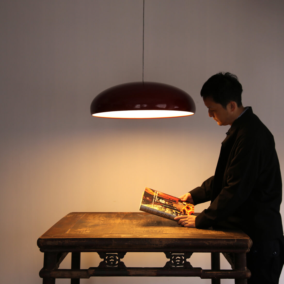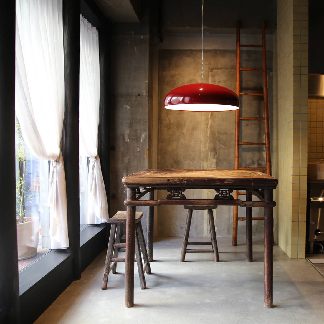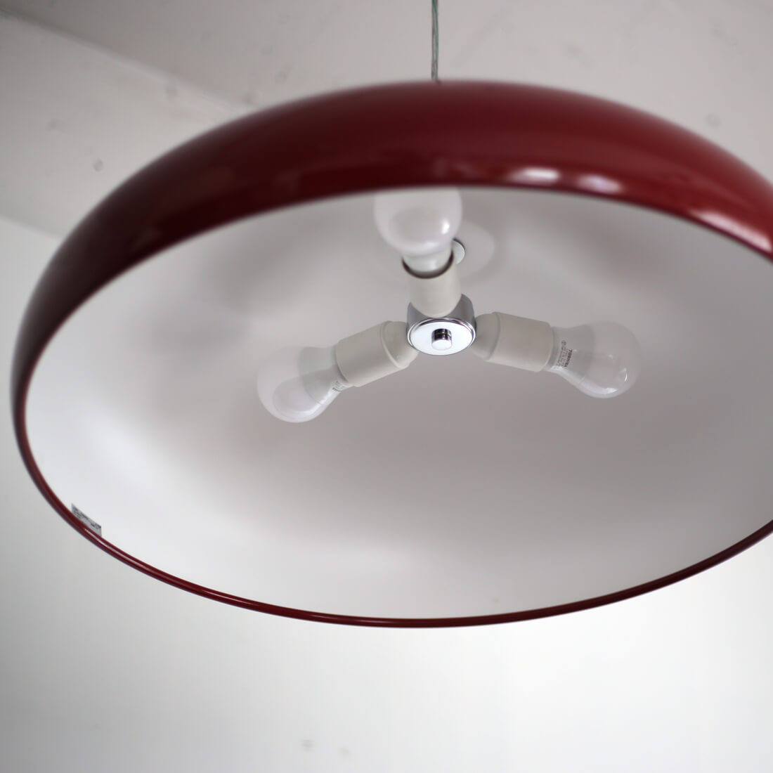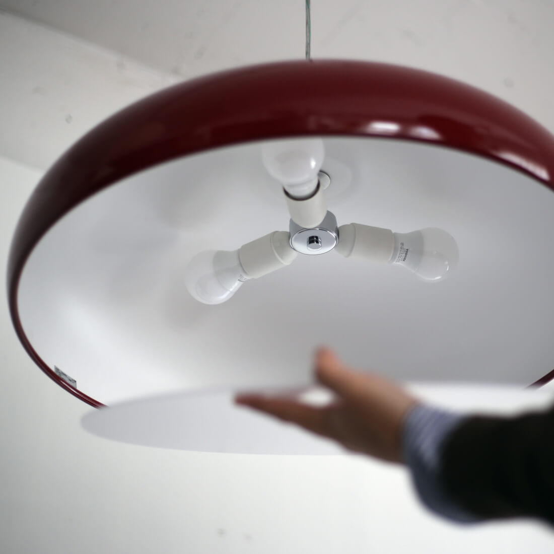 fontana arte のデザインアーカイブから生まれた、空中に浮かぶオブジェのような照明。カラーリングも冴えている。同デザインのシーリングランプもあり。