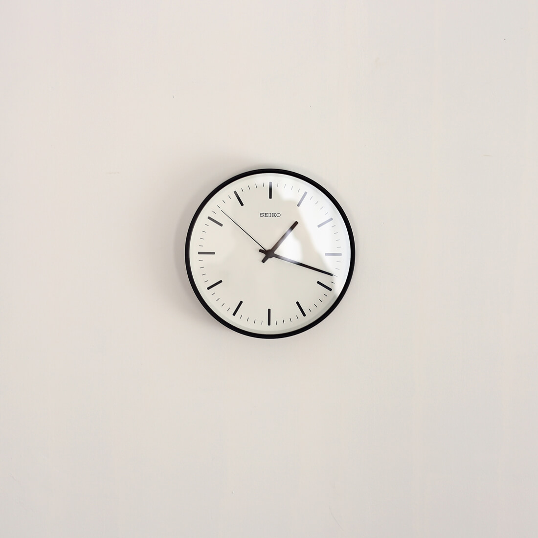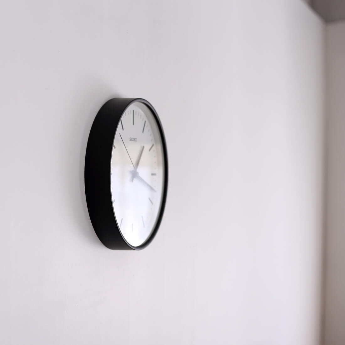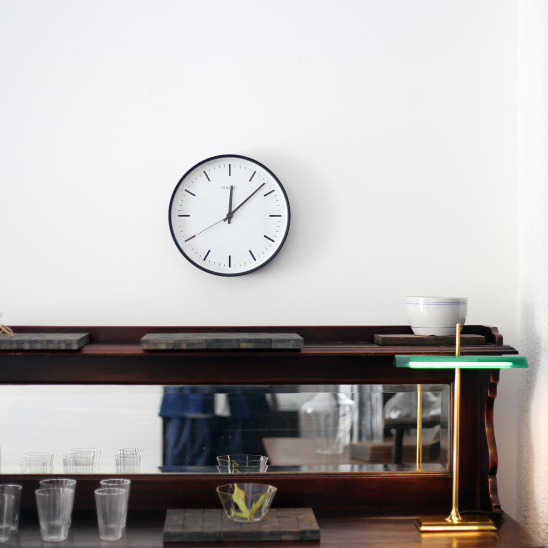 「大事なのはバランスが取れていて自然に目に入ってくること」。軽量なマグネシウムを業界として初めて秒針に採用、文字の印刷方法やフレームの曲線など細部にまで配慮した、非常に視認性の高い掛け時計です。
