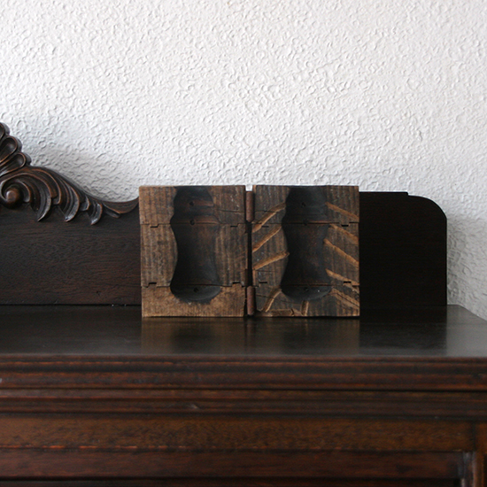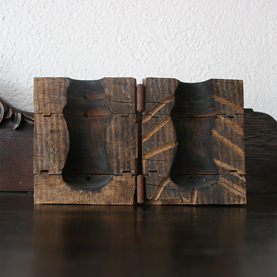 何の素材を成型した型か不明ですが、実際に使われた跡があるので、内側が少し焦げています。空気か熱を逃がすための通り道だと思われる筋が、